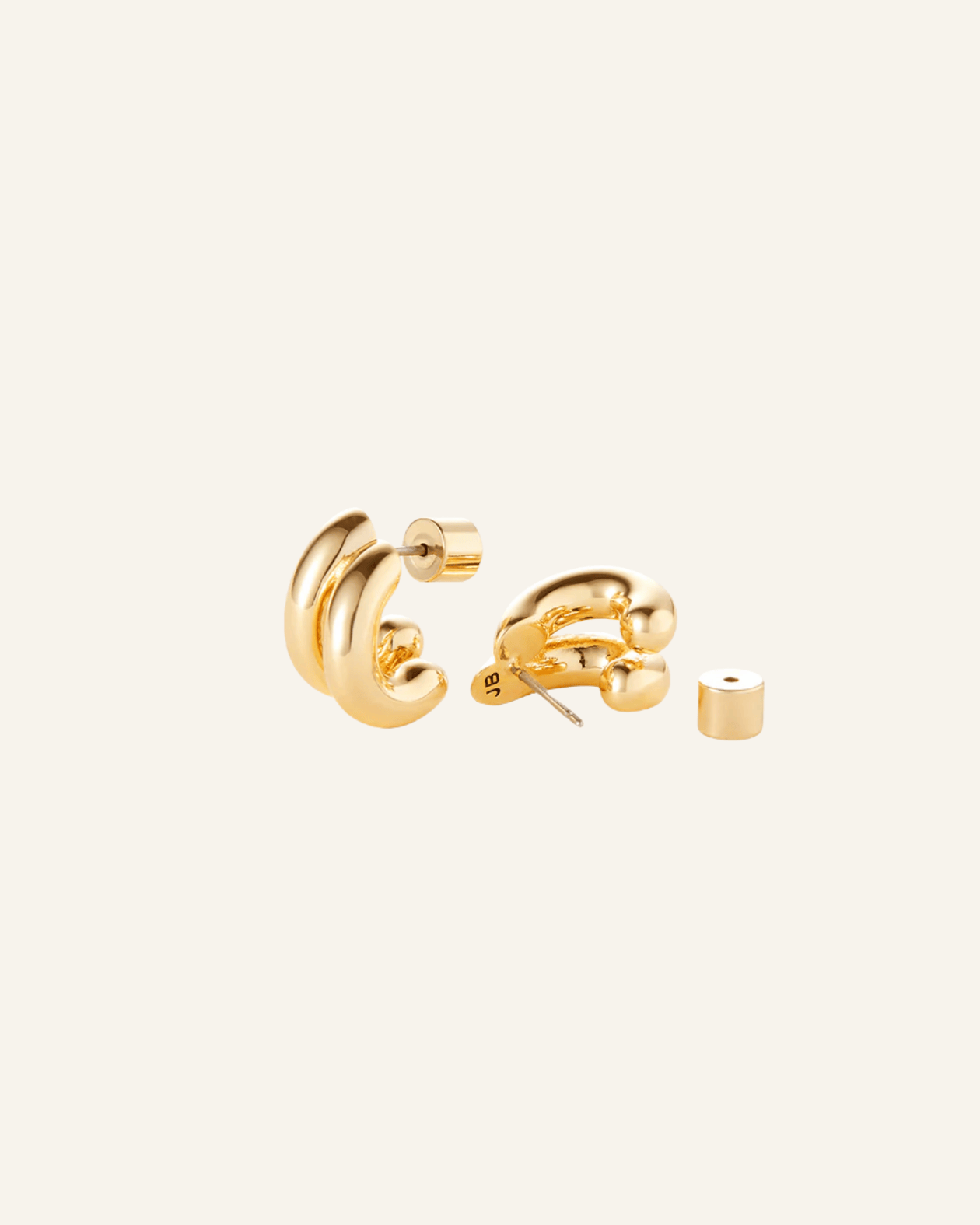 the jenny bird mini florence earrings are the perfect classic gold earring. this custom jenny bird design wears like a huggie in a single piercing, while creating the illusion of two hoops stacked together. plus, they're micro-light so you won't even feel them on. high-polish gold + come with a cylinder backing.