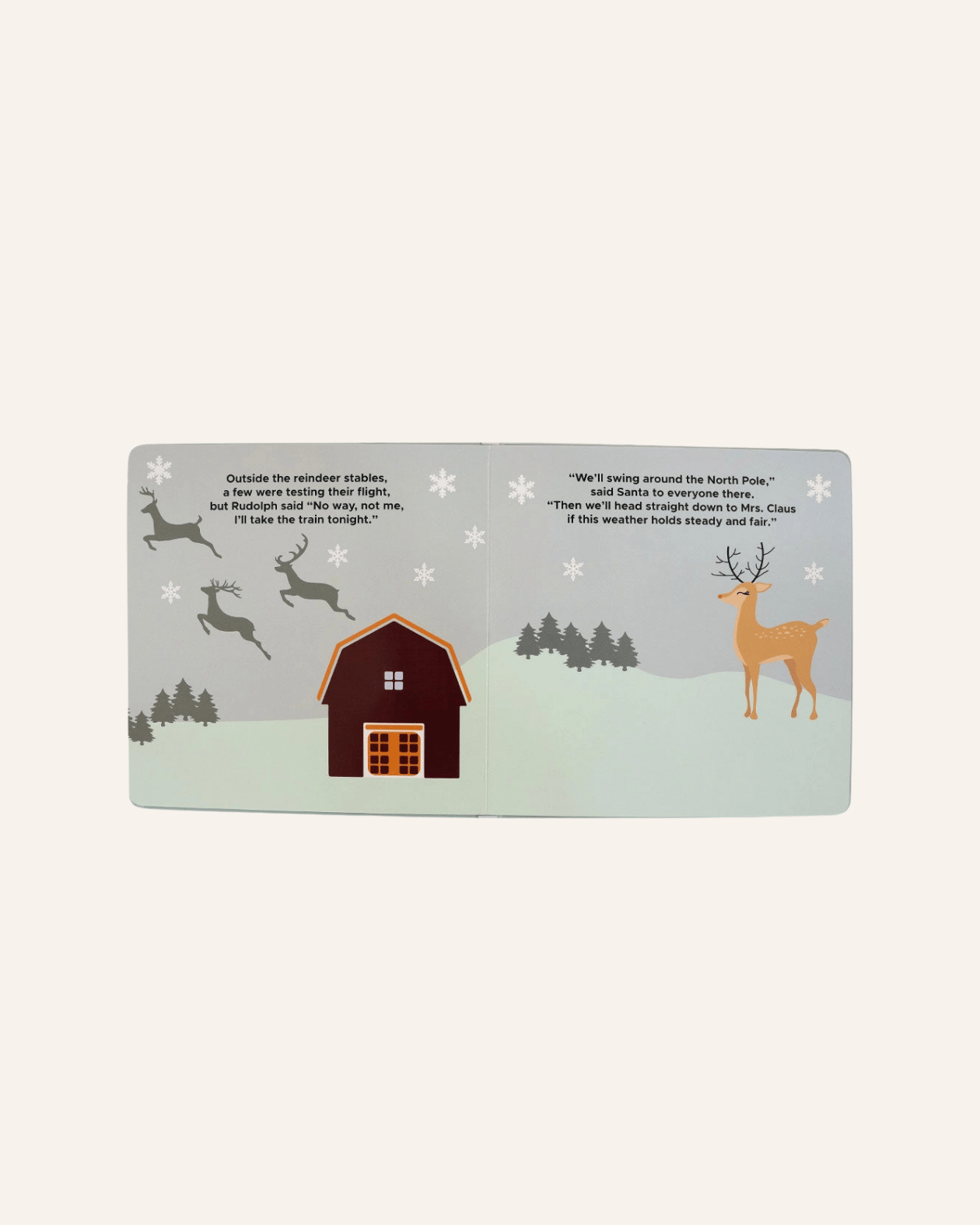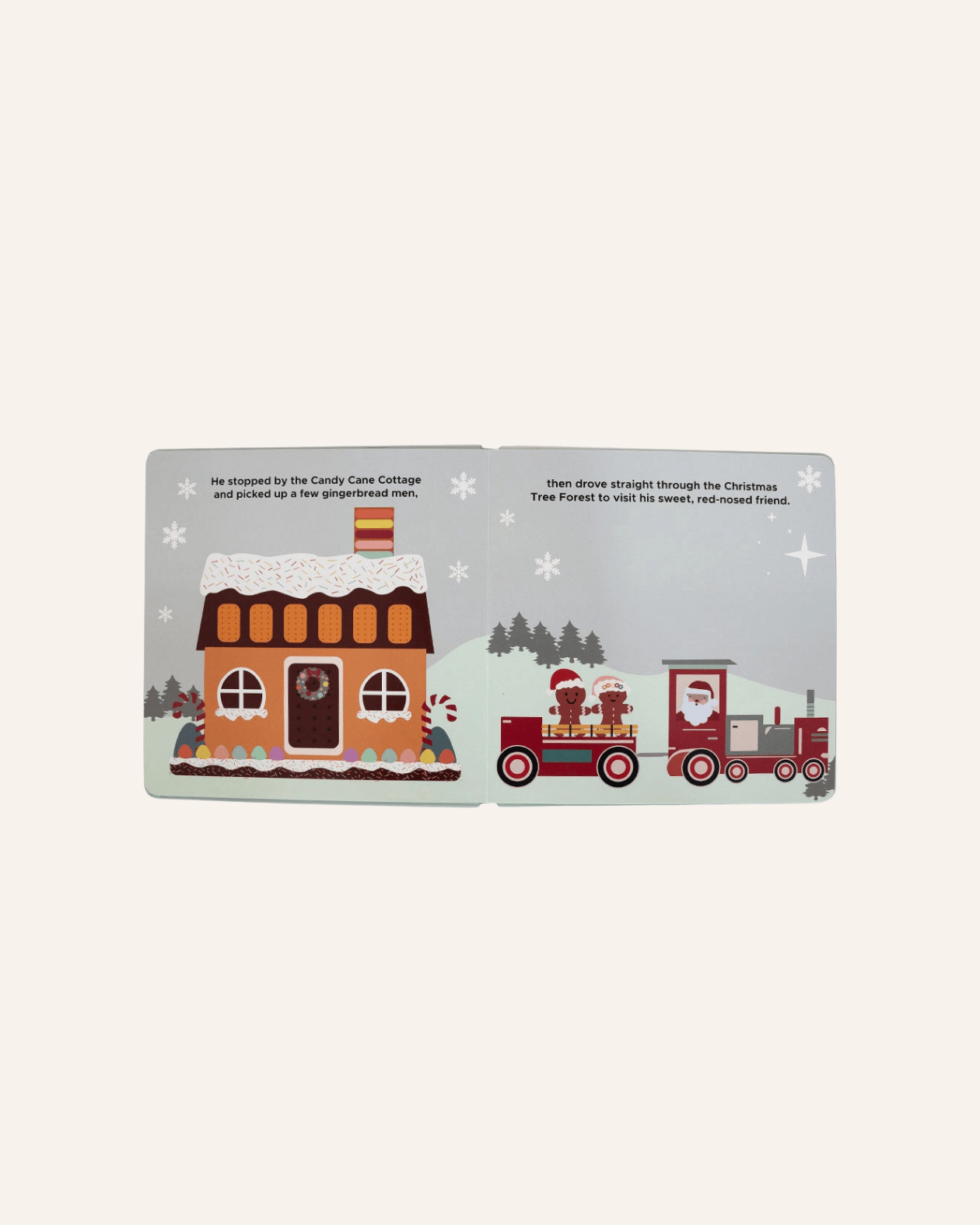 join santa as he drives his wonderful christmas train all over the north pole, visiting his friends + taking them for a ride. but, a terrible snowstorm soon puts an end to their fun. how will they escape, + will they maybe make a new friend along the way? little ones will love the adorable pictures + fun rhymes in this new board book.