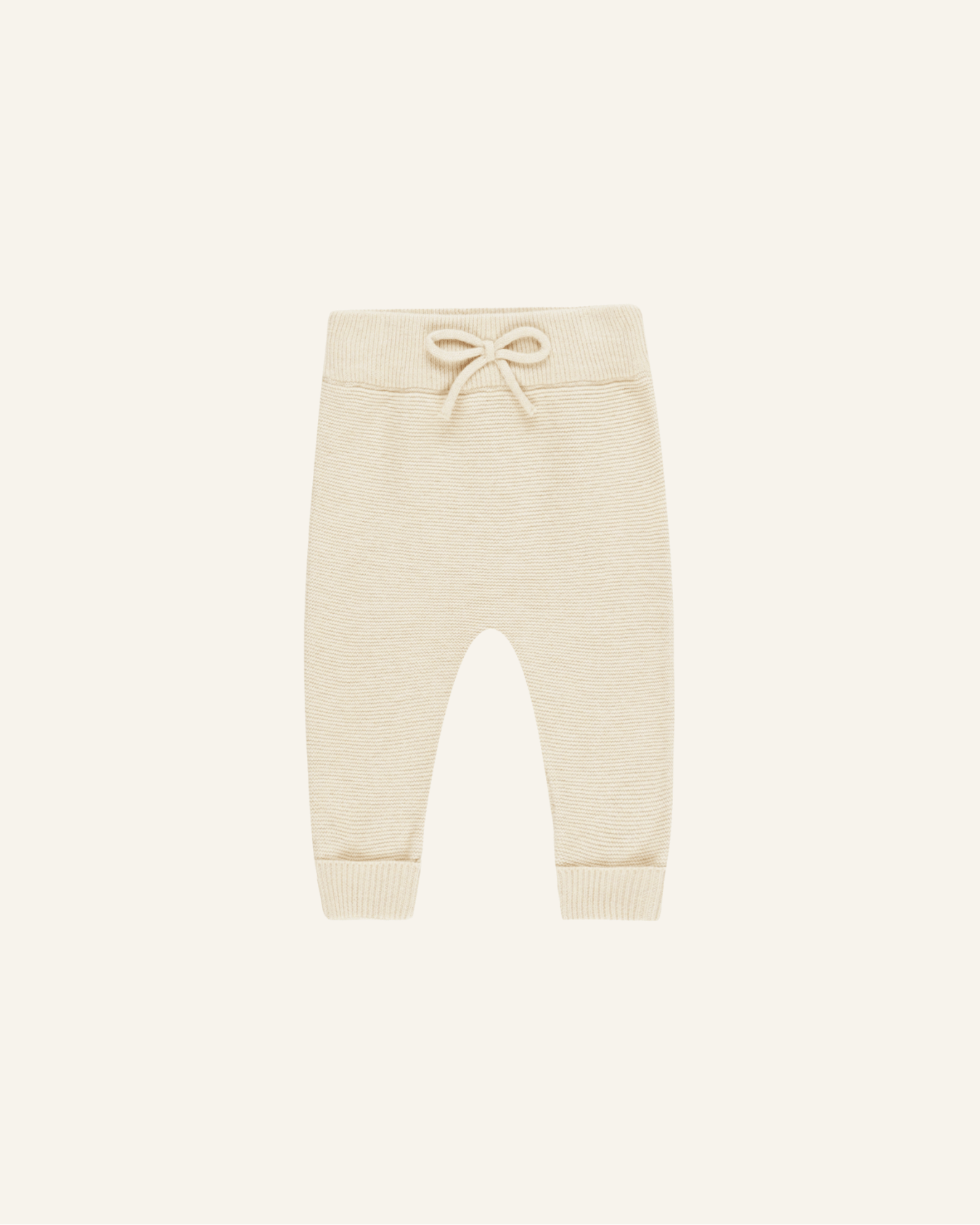 the knit pants by quincy mae are a cozy winter staple. designed with an elastic waistband with a fixed tie + ribbed ankle cuffs for a cozy, comfortable fit.