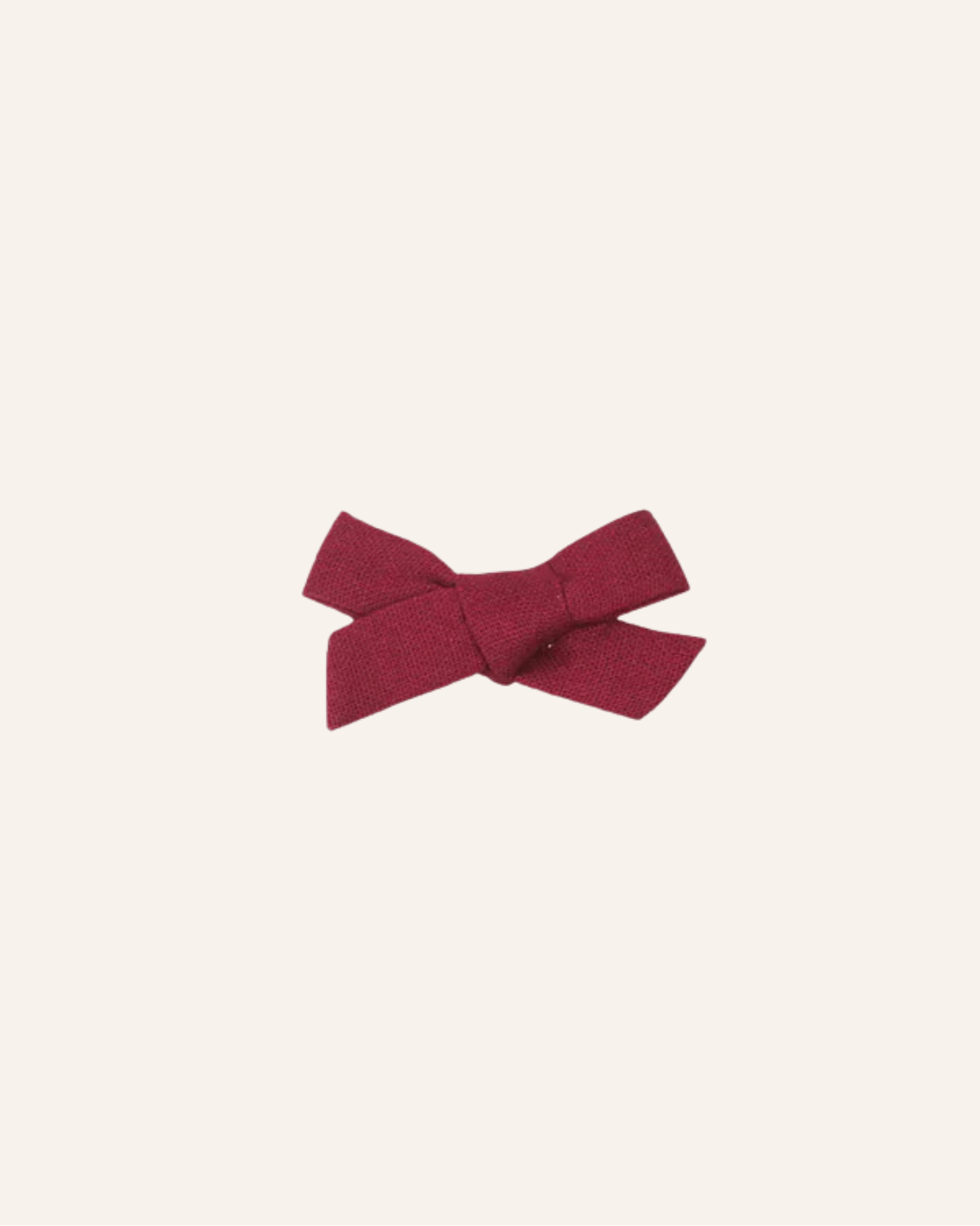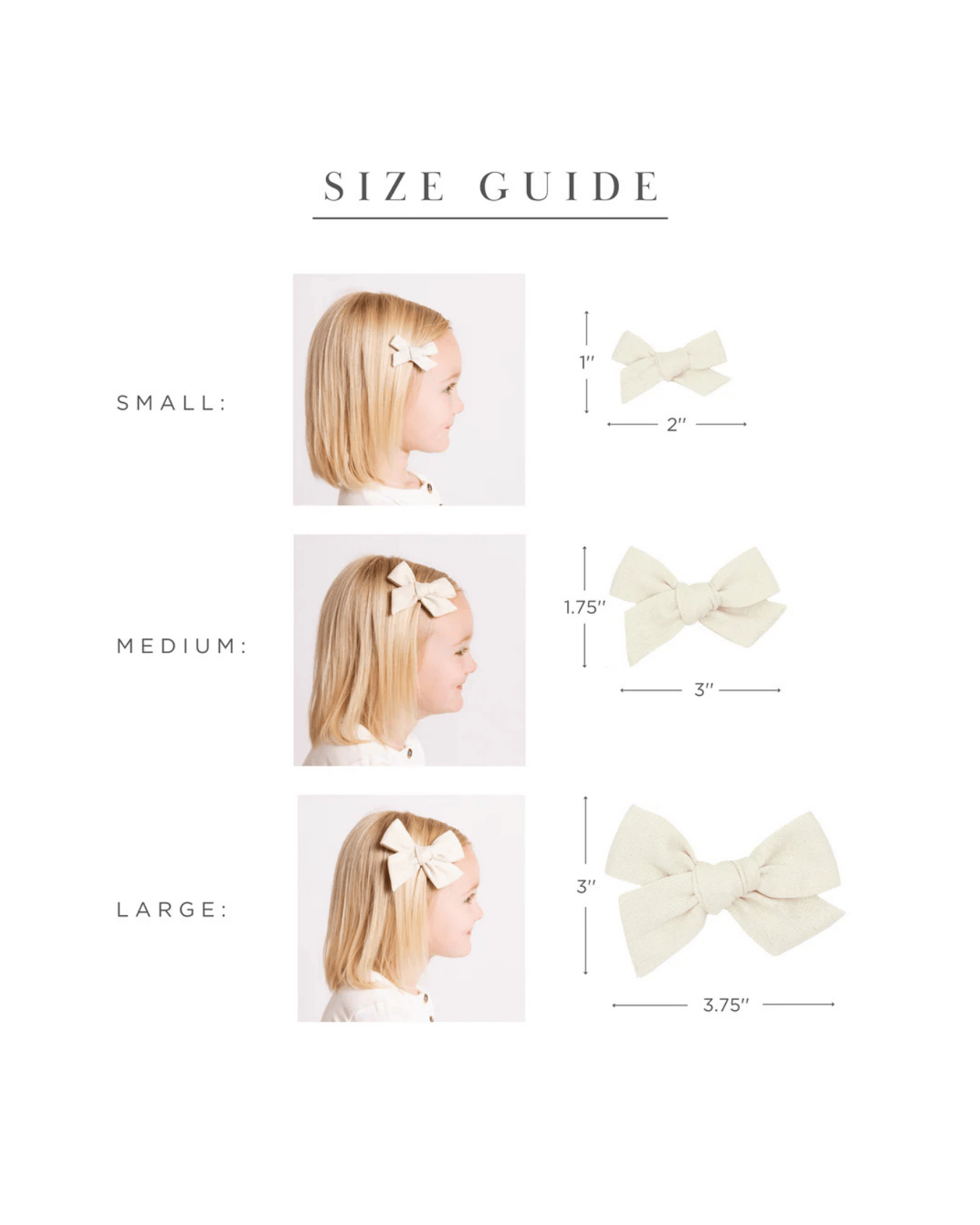 this adorable lou lou + company linen bow is attached to an alligator clip. each bow is hand tied, secured tightly, and the perfect addition to your little girl's outfit.