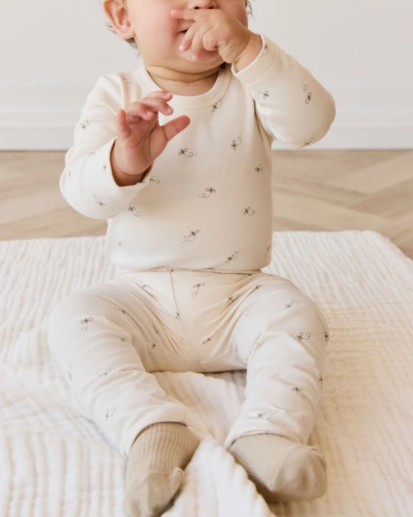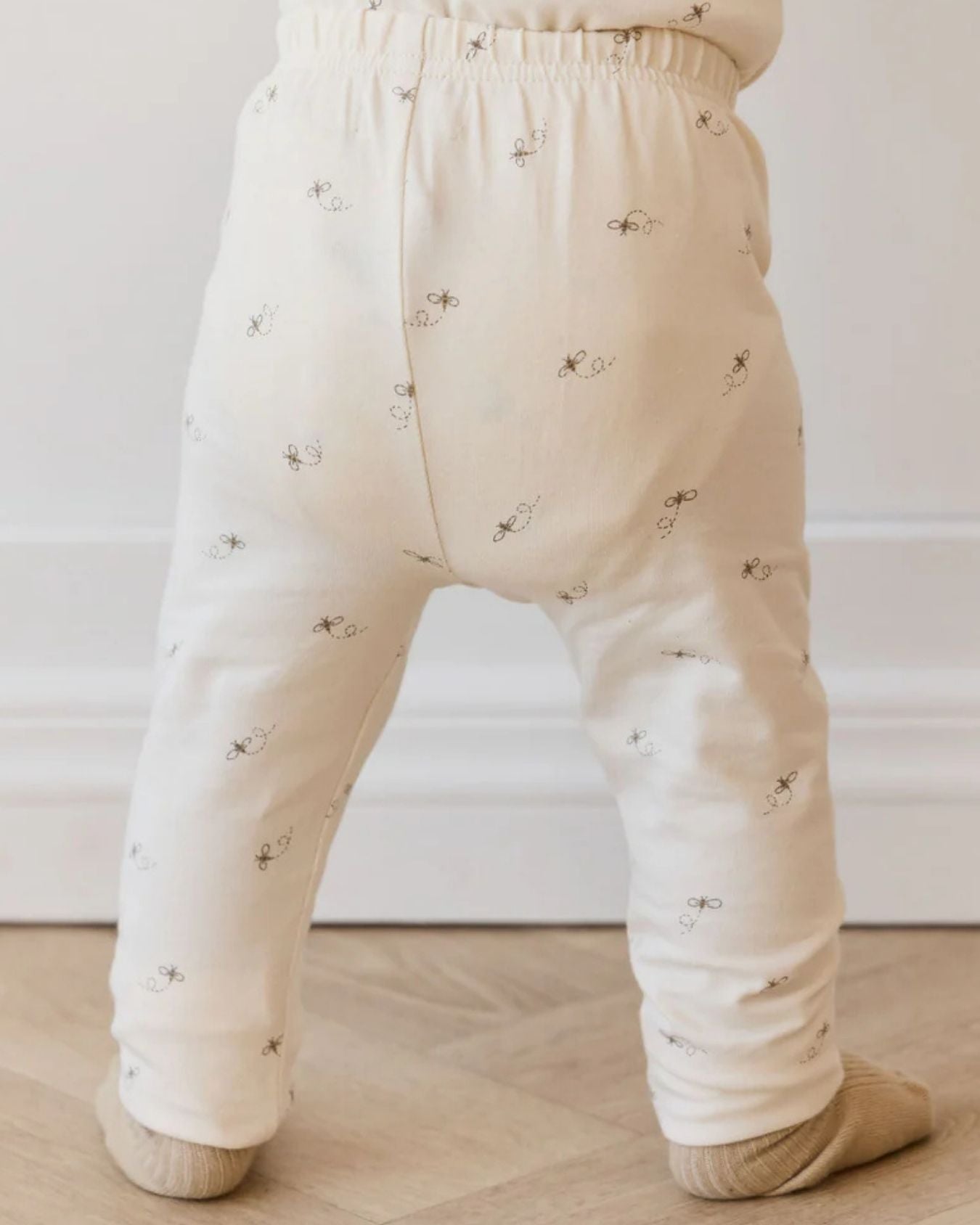 these organic cotton everyday leggings by jamie kay are lightweight, stretchy + breathable.  elastic waist ensures comfort throughout the day + the cute bumblebee print is so easy to wear.