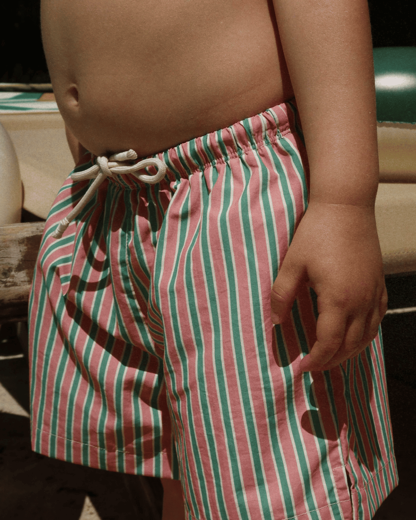 the asnou swim shorts by konges slojd are designed with a practical drawstring waist + feature slits on the sides for added movability. the perfect swim staple for your little boy.