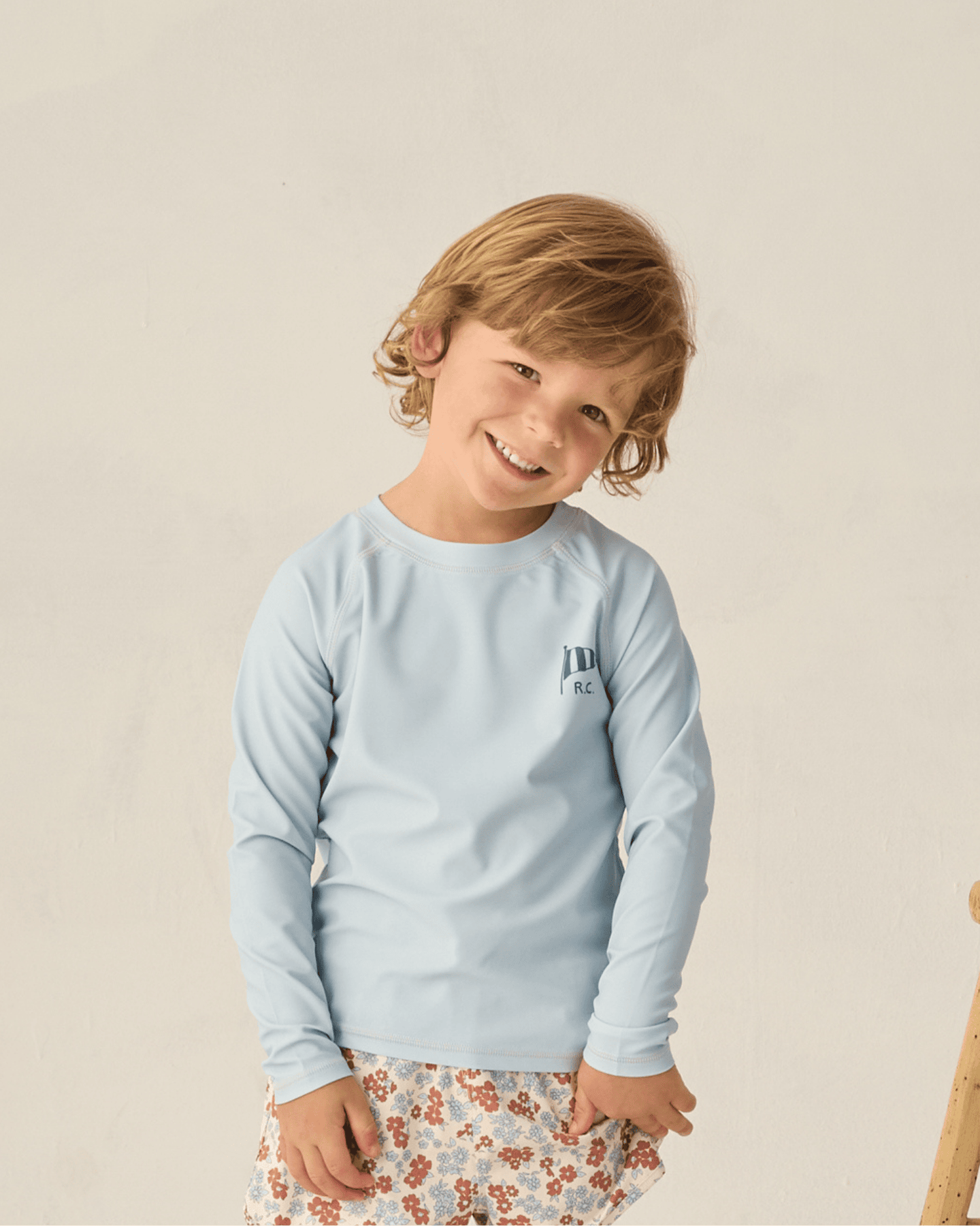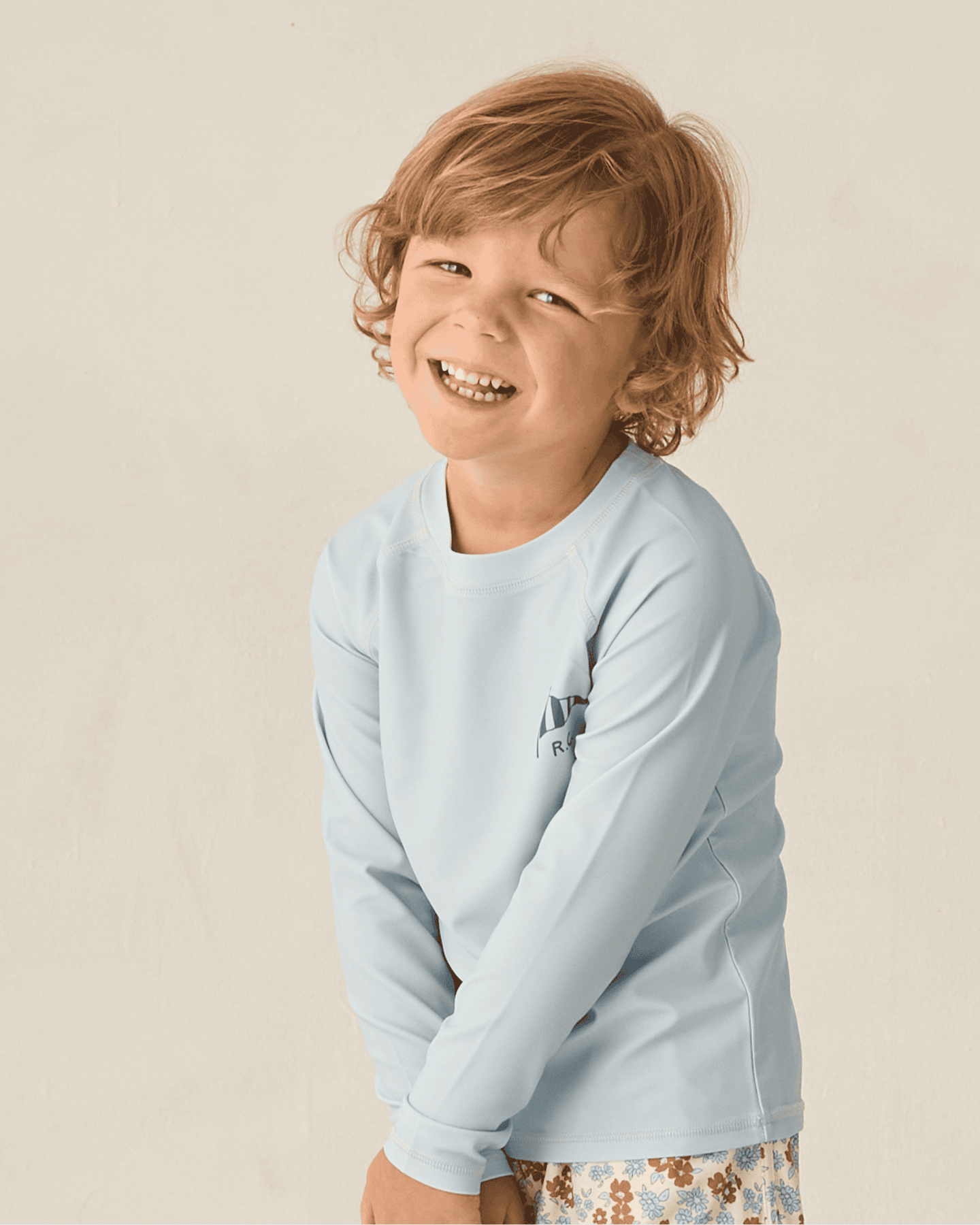 the rylee + cru long sleeve rashguard is the perfect swim top for pool + beach play.  the light blue color goes with virtually any swim bottoms + has a UPF 50+ material to keep your little one protected from the sun.