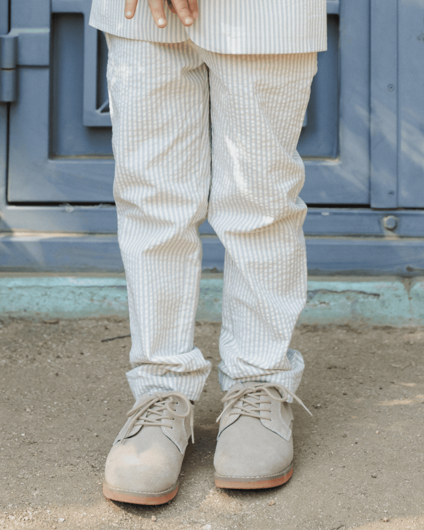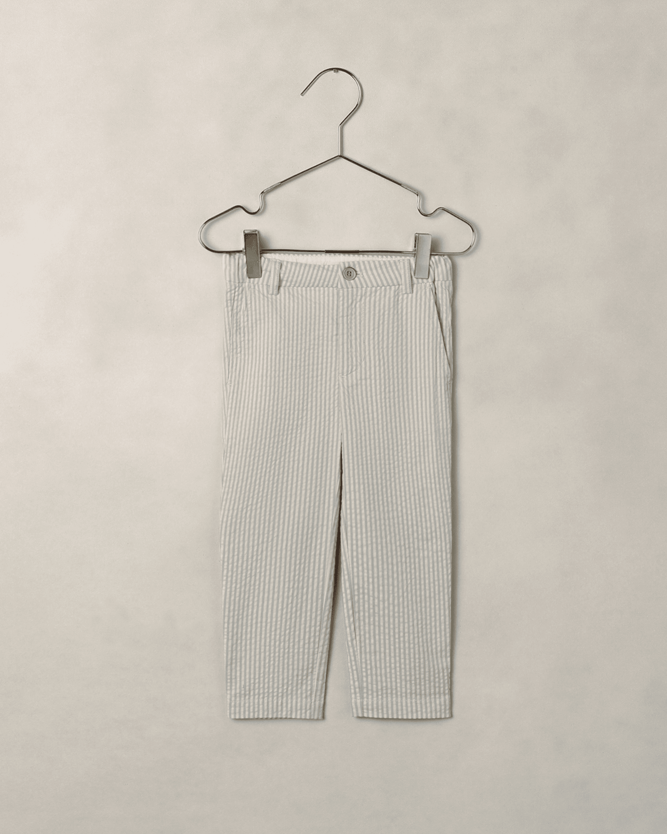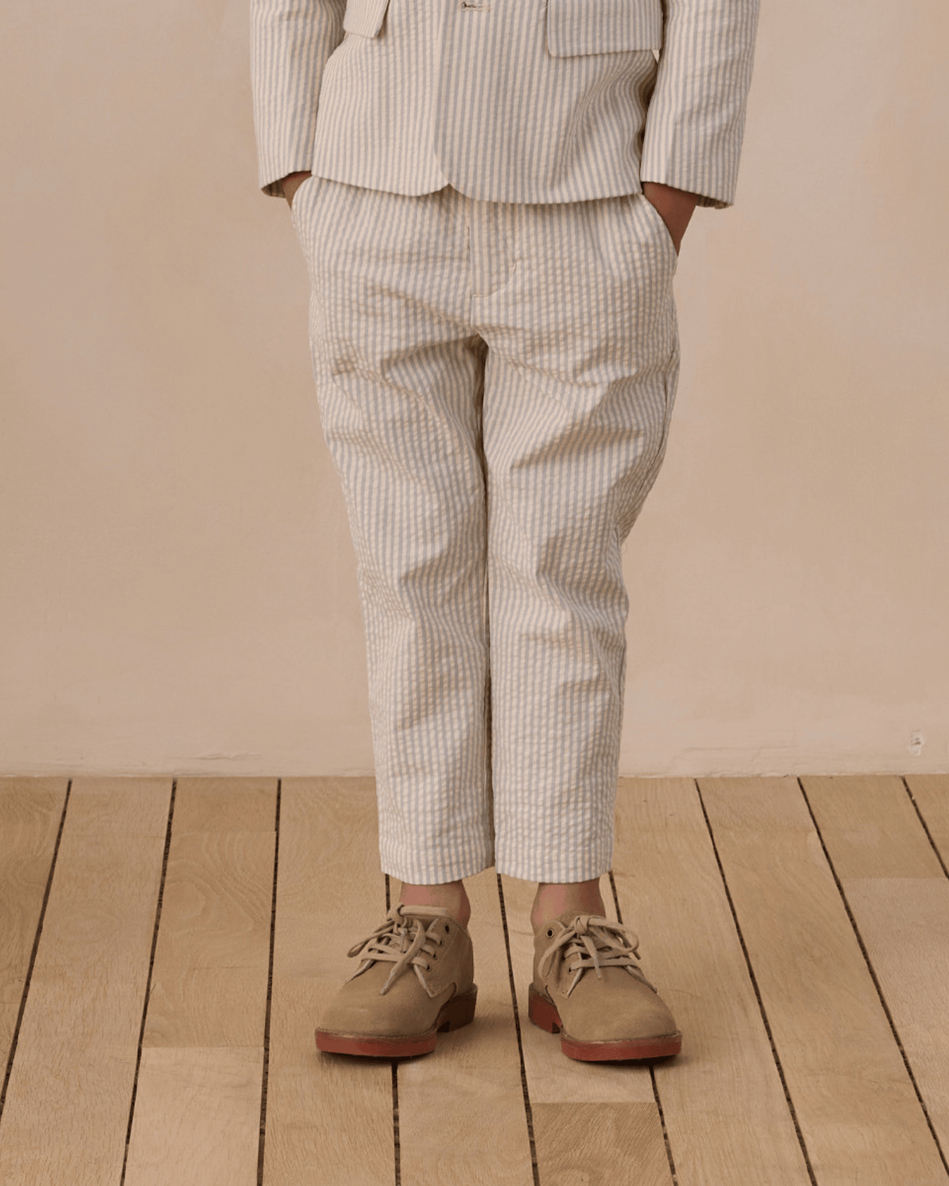 the sebastian pant by noralee is a special occasion suit pant made from a soft, textured cotton melange fabric. featuring an adjustable elasticized waistband, zip fly with a marbled button + functional pockets, your little boy will feel comfortable wearing these suit pants. we love the classic stripe, perfect for special spring events.