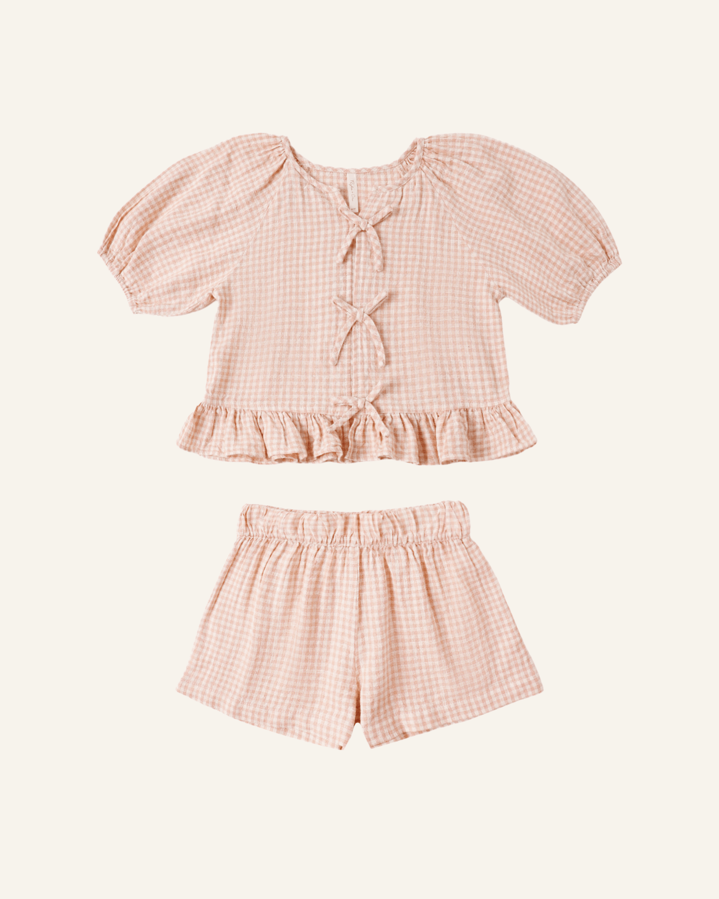 the sweet + flowy juniper set by rylee + cru was made for summer adventures. featuring raglan sleeves with elastic openings, an adorable peplum hem, three fixed bows down the front + matching shorts with an elastic waistband.