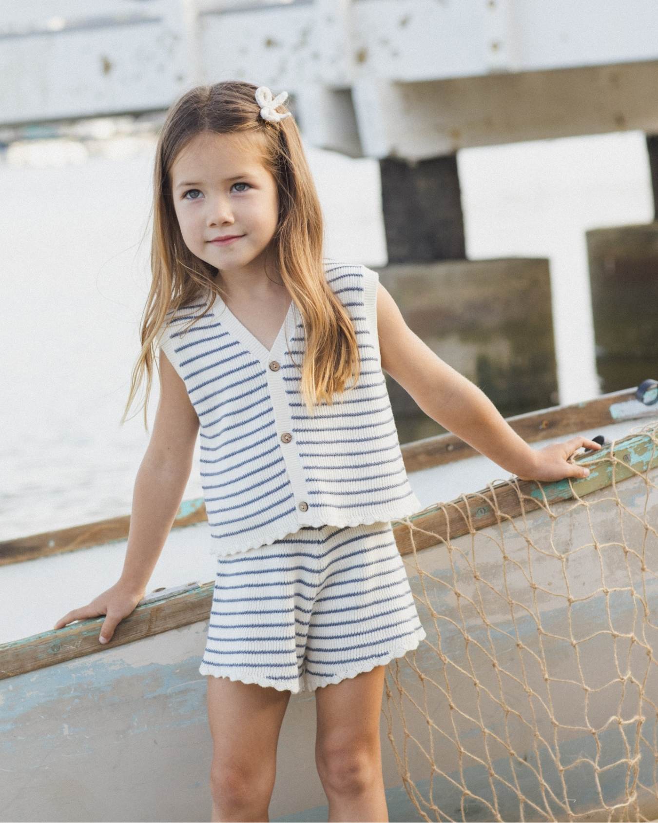 the sweetest stripe tank + short set for warmer weather, made by rylee + cru. we love this lightweight outfit for summer picnics, family photos, or birthday parties. the summer crochet look, especially in this blue striped pattern, is a must-have this season. featuring coconut buttons down the front and crocheted scalloped trim.