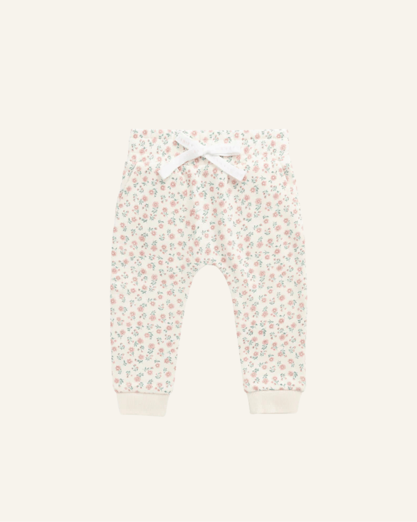from the jamie kay bonjour cherie collection, these organic cotton track pants are stylish + cozy. they are sure to keep your little one comfy while they play all day. with functional pockets and drawstring, these sweat pants are as practical as they are stylish.