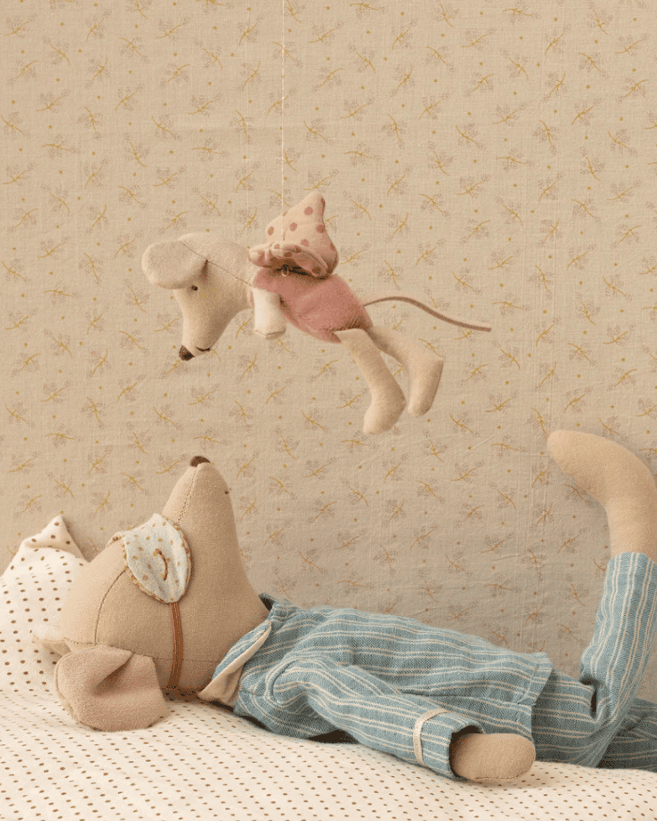 let your imagination fly with this maileg fairy mouse. the fairy mouse has soft wings + a string on the back to help them fly - or hang - everywhere.