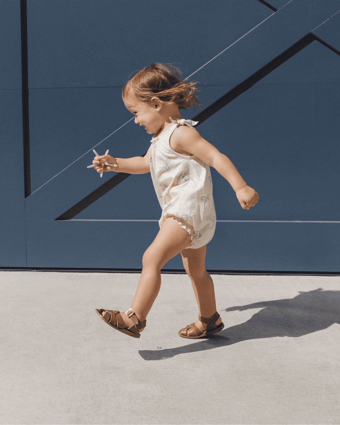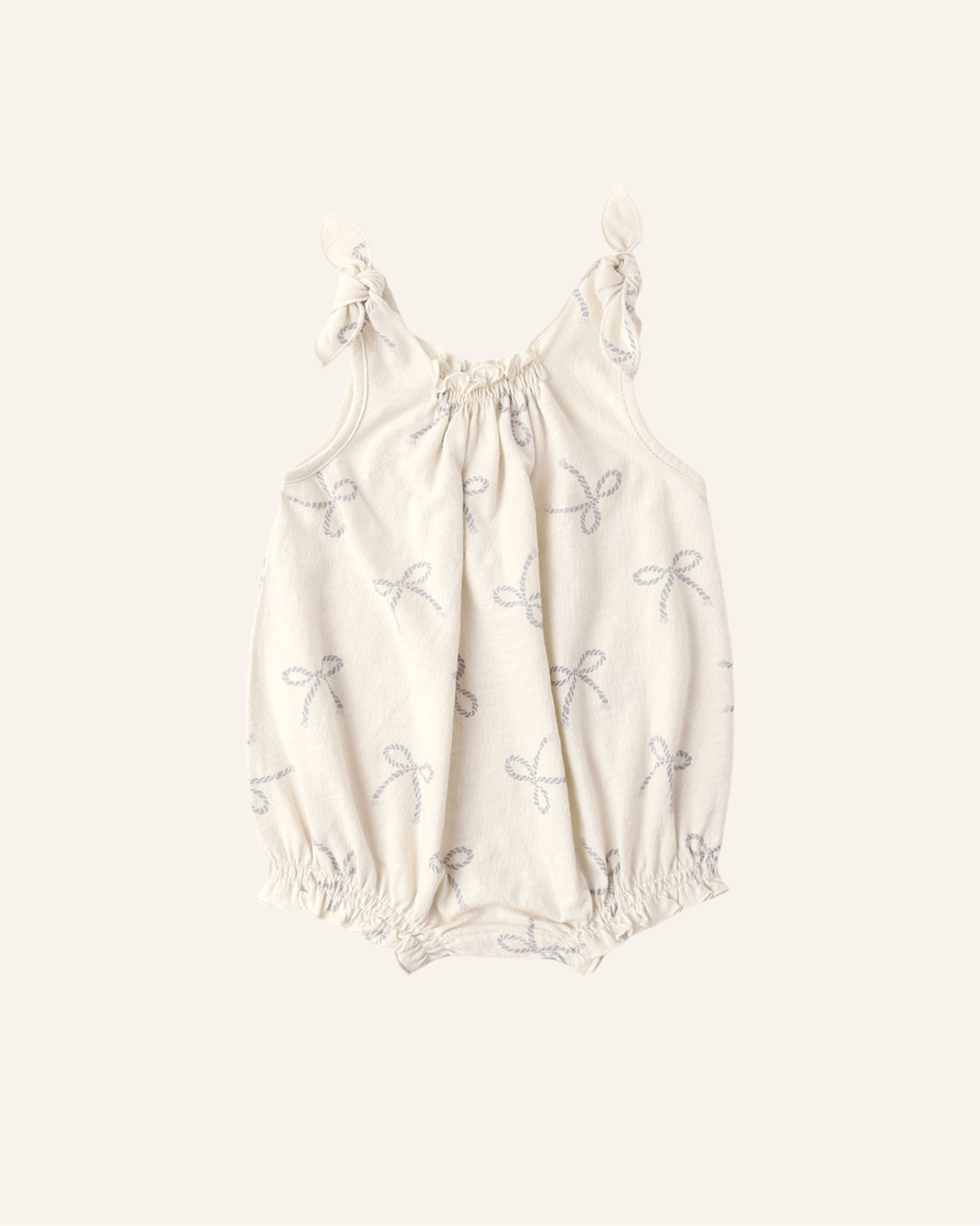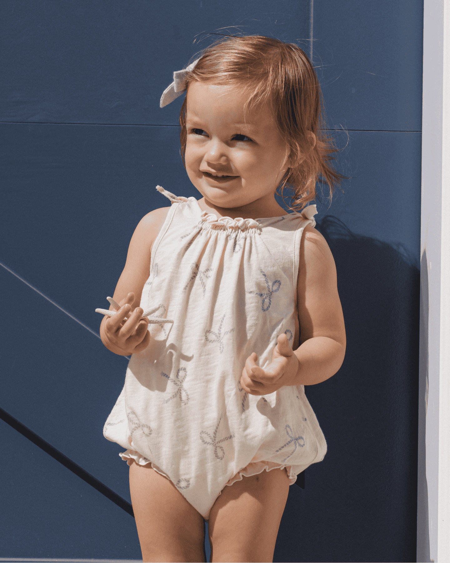 the shoulder tie bubble by rylee + cru is the easiest outfit your baby or toddler girl will love. super soft with tie shoulder straps + bottom snaps for easy changing. we love the fun summer print.