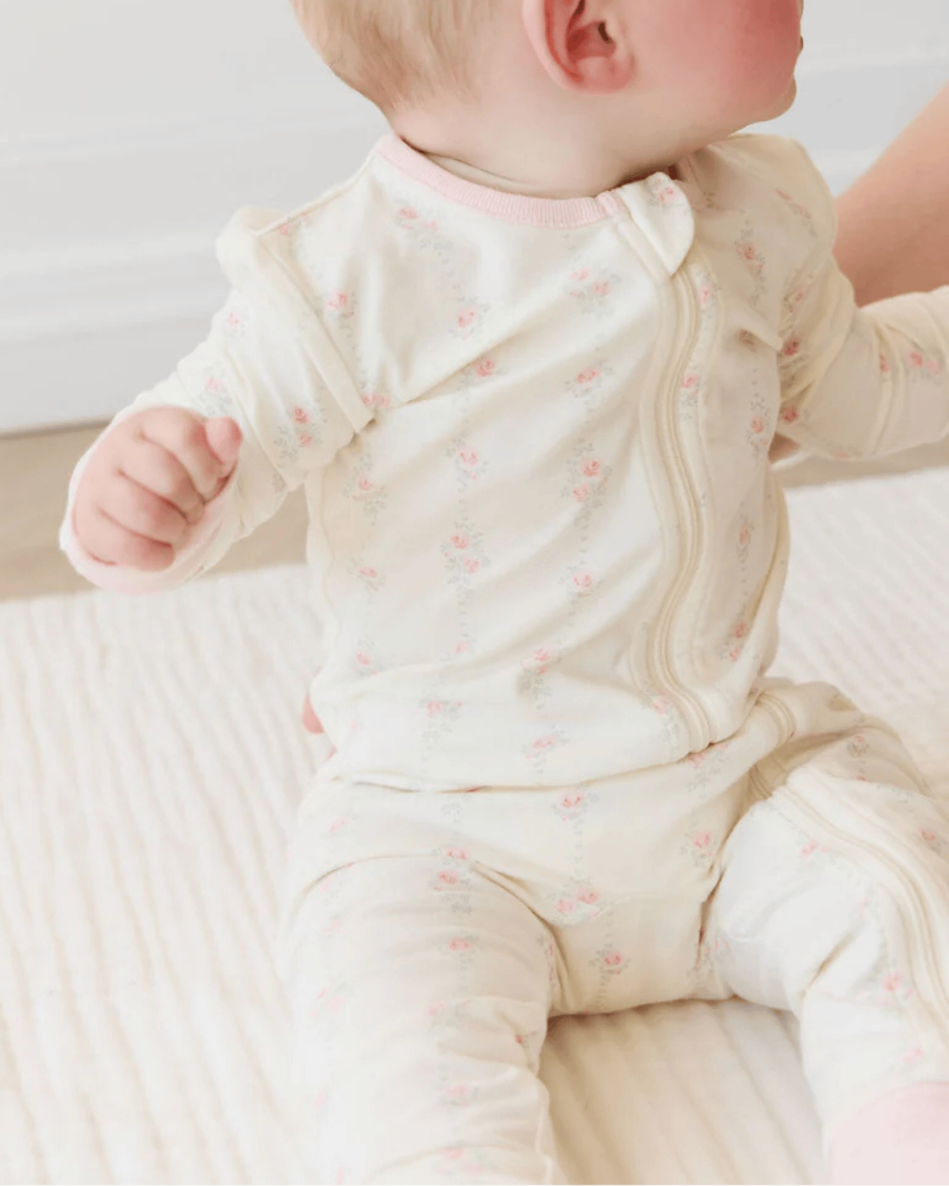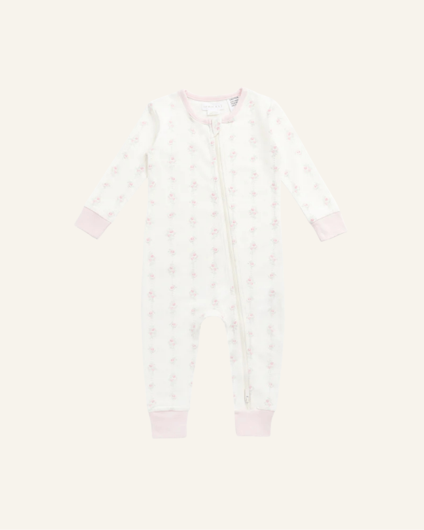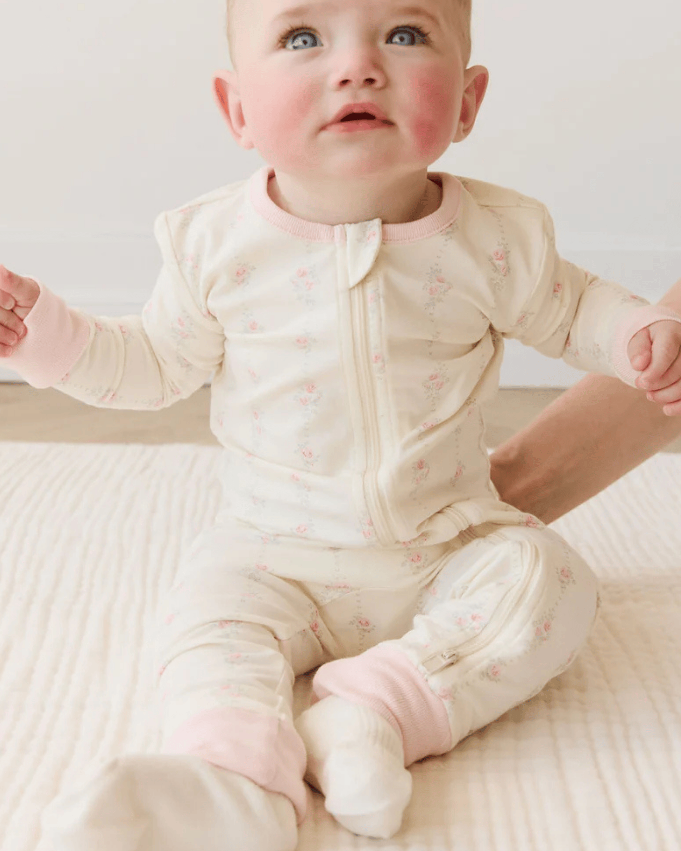 from the jamie kay bonjour cherie collection, this pretty floral jude onepiece is the perfect sleeper or on-the-go outfit for your baby girl.  features a zipper for easy changing and soft, organic cotton for your little one's sensitive skin.