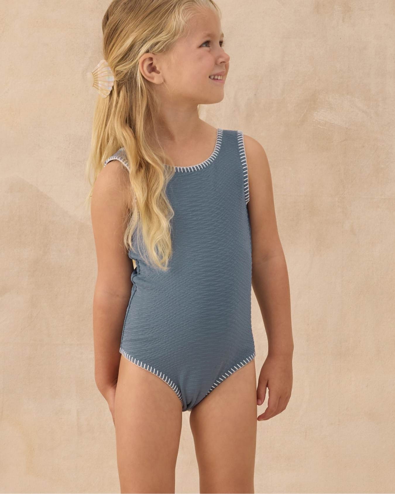 the moxie one-piece swimsuit by rylee + cru features a classic silhouette for endless summer wear. complete with a crew neck front + deep scoop back. including upf 50+ material, this swimsuit is perfect for your little girl.