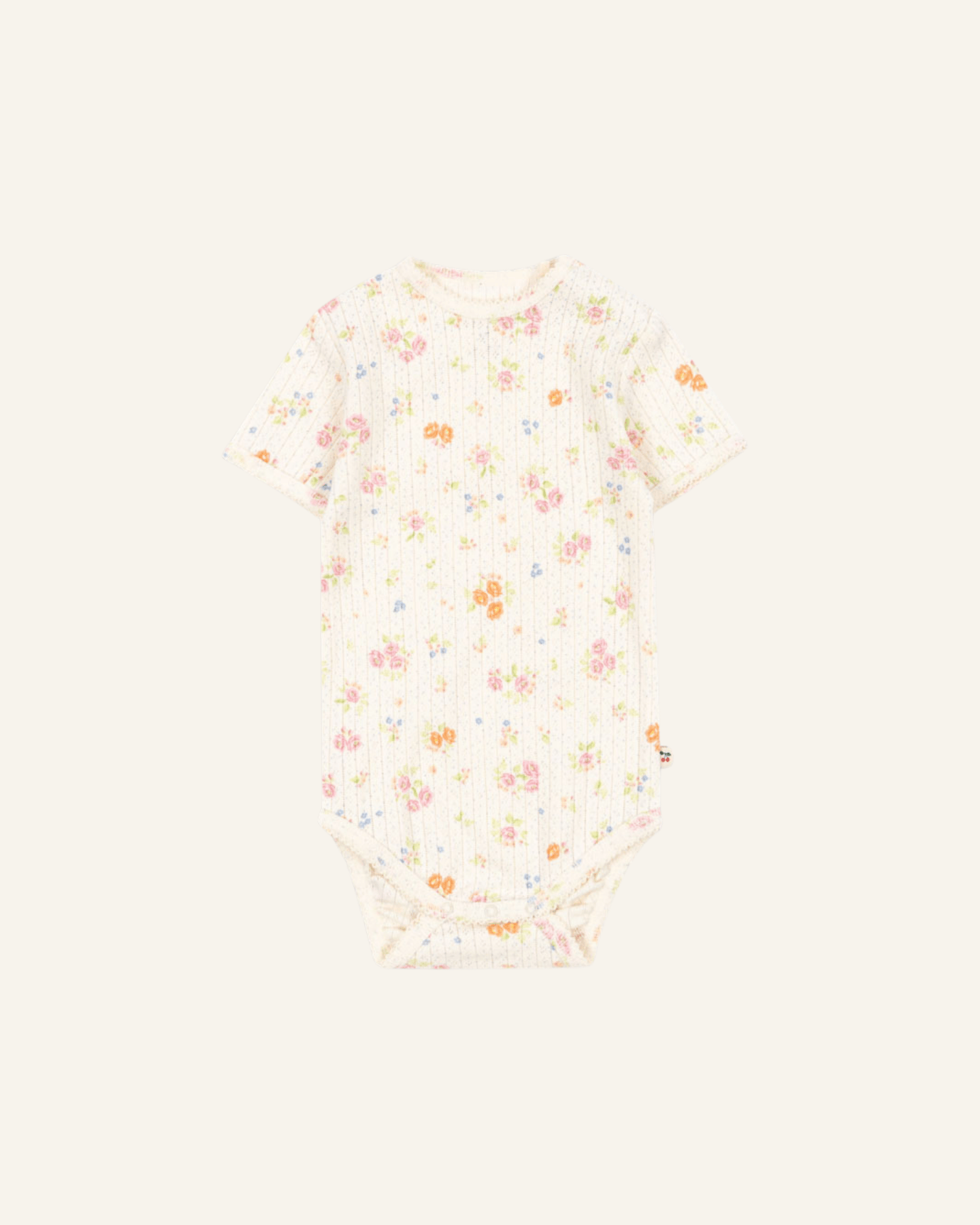 this super soft baby onesie by konges slojd has a decorative pointelle texture. the snaps at the neck + bottom make for easy changing.  the high quality, organic cotton material gives your baby the perfect feel of comfort throughout the day. the fabric has a delicate lace-like pattern to make it extra special with adorable trimmed edge details.