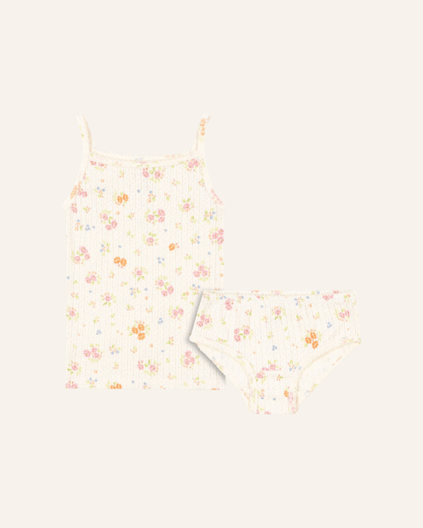 the minnie underwear + tank set by konges slojd is the perfect comfy set for your little girl this spring. feaures a tank strap top + underwear made from 100% organic cotton. this essential set is made to be worn both day + night as a comfortable layer close to the skin. designed with a decorative all-over pointelle pattern, picot edges + an adorable floral print.