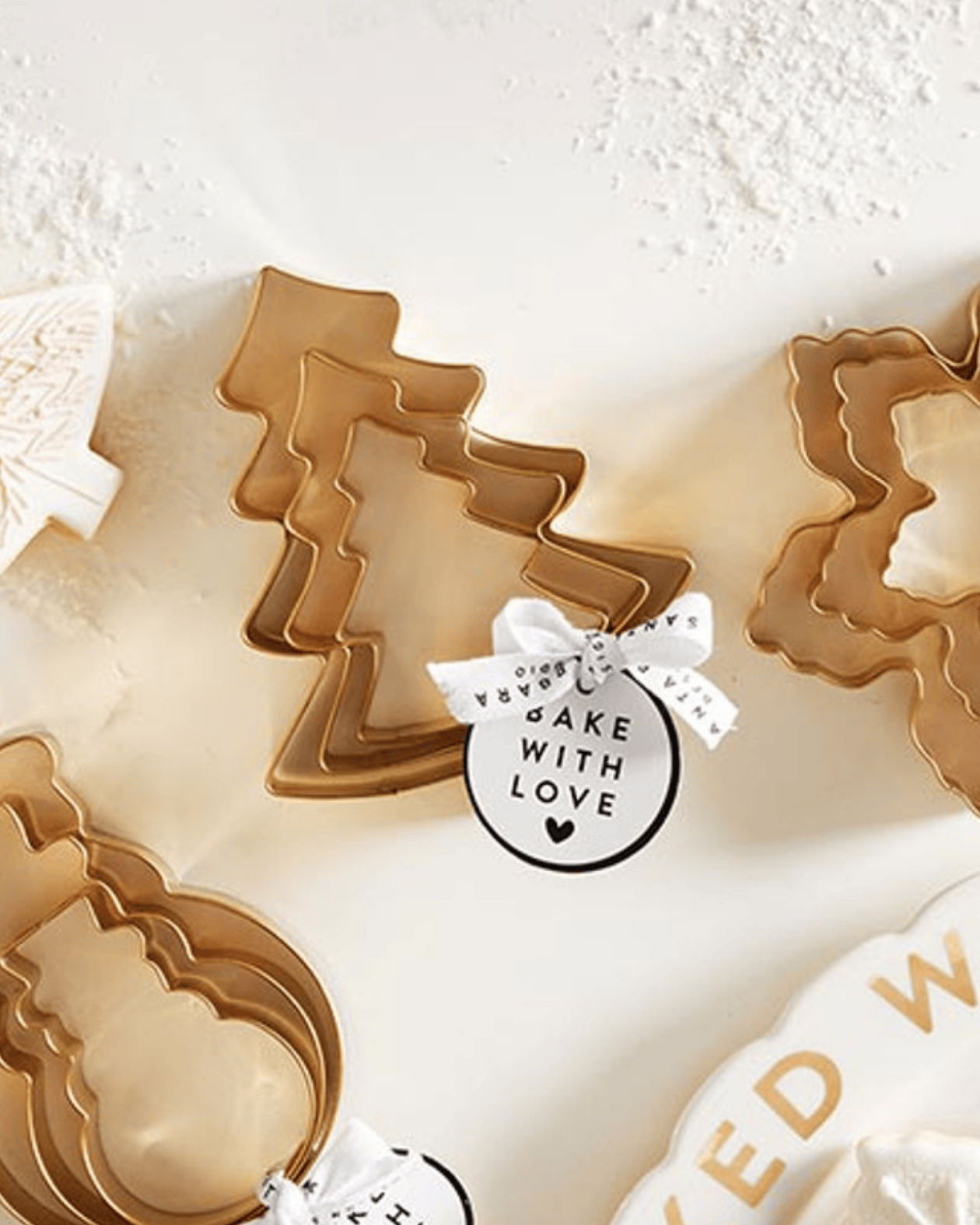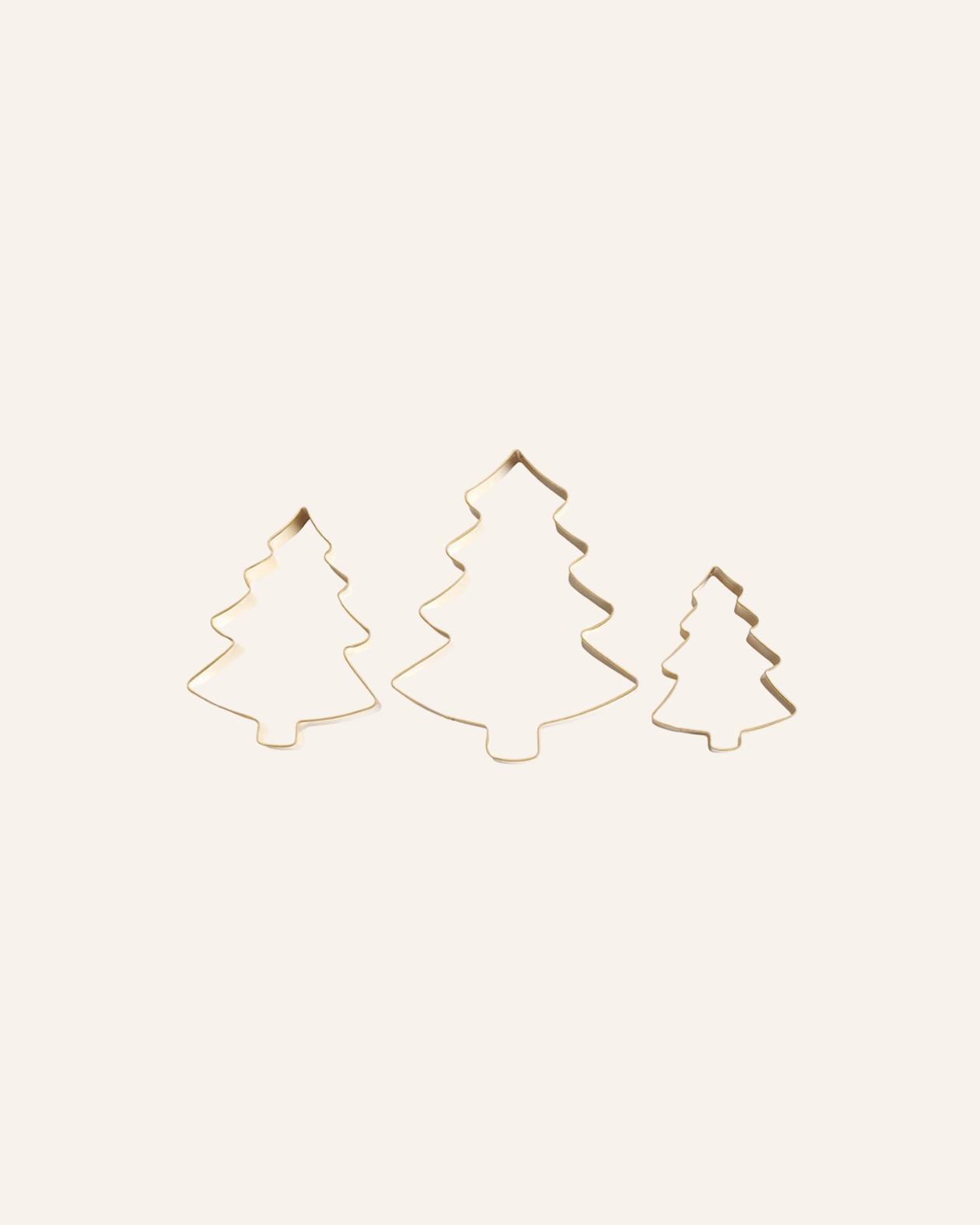 perfect for holiday baking, these adorable gold toned christmas tree cookie cutters make the perfect gift. add one as a gift topper, or shop the set for mom. these are sold individually by size, but nest perfectly as a set if all three sizes are purchased.