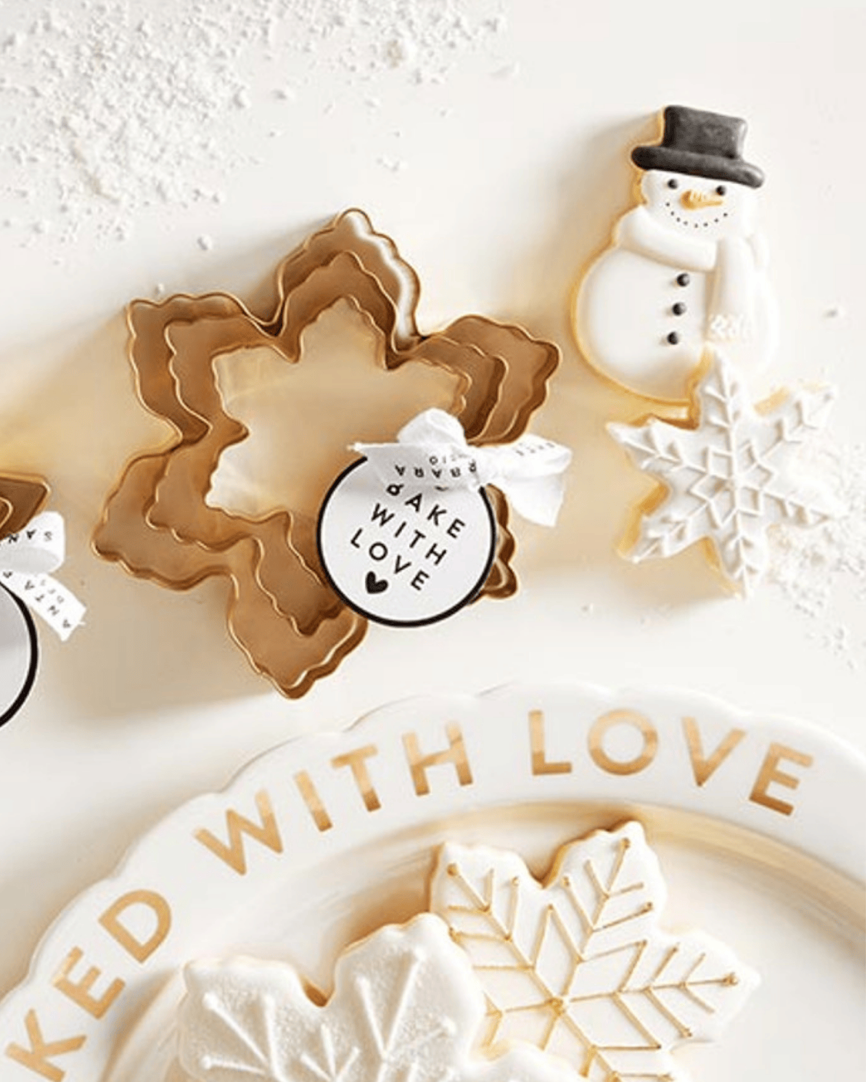 perfect for holiday baking, these adorable gold toned christmas tree cookie cutters make the perfect gift. add one as a gift topper, or shop the set for mom. these are sold individually by size, but nest perfectly as a set if all three sizes are purchased.