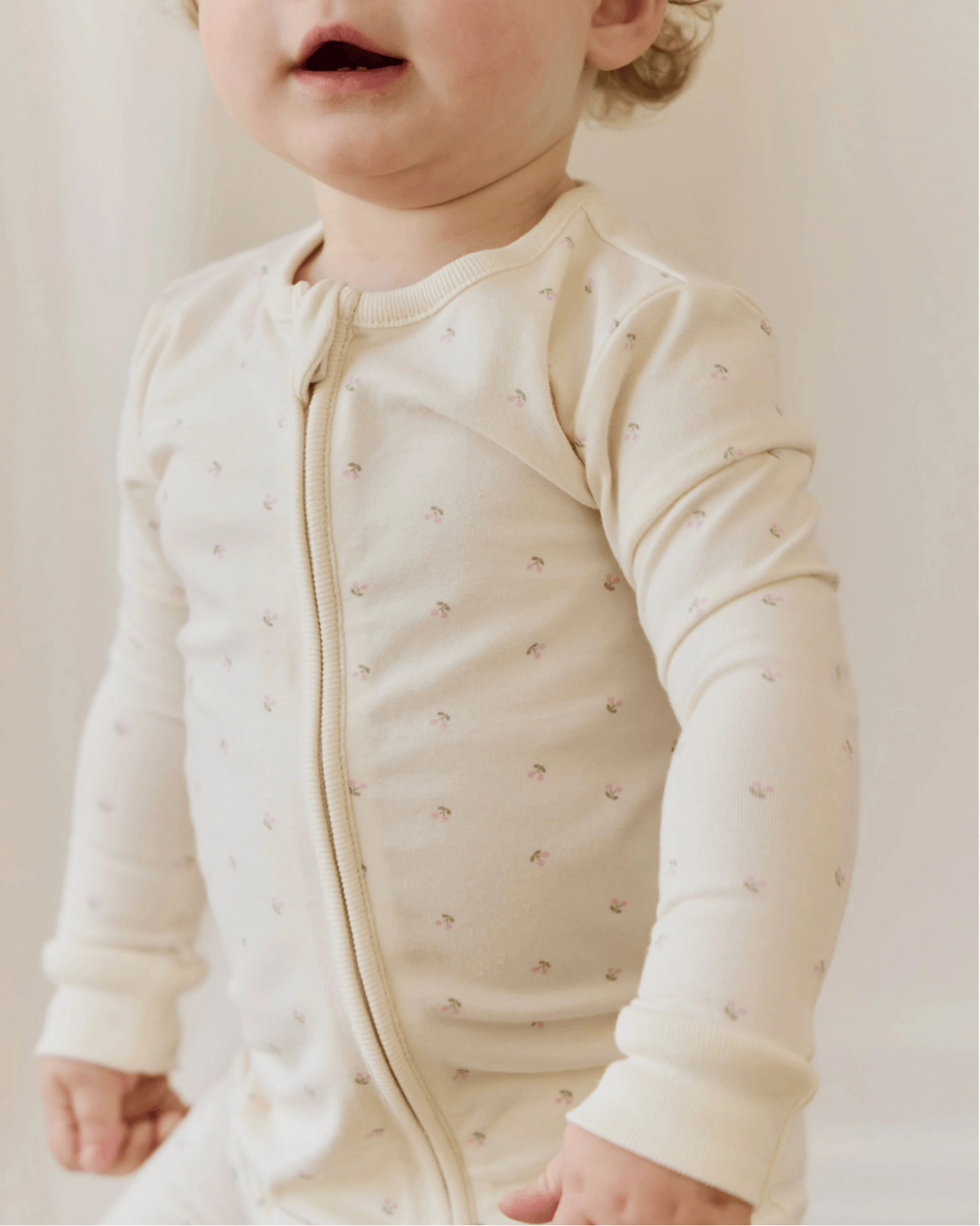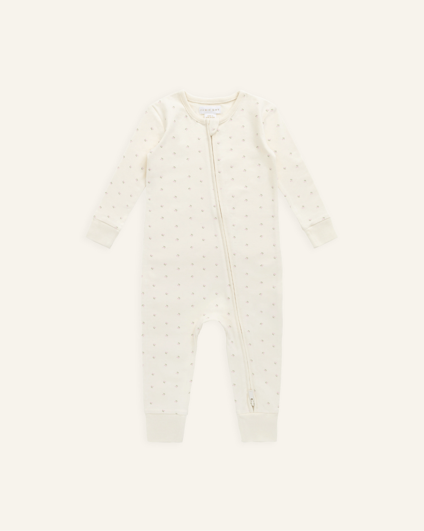 the jude onepiece by jamie kay is the perfect sleeper or on-the-go outfit for your baby girl. features a zipper for easy changing and soft, organic cotton for your little one's sensitive skin.