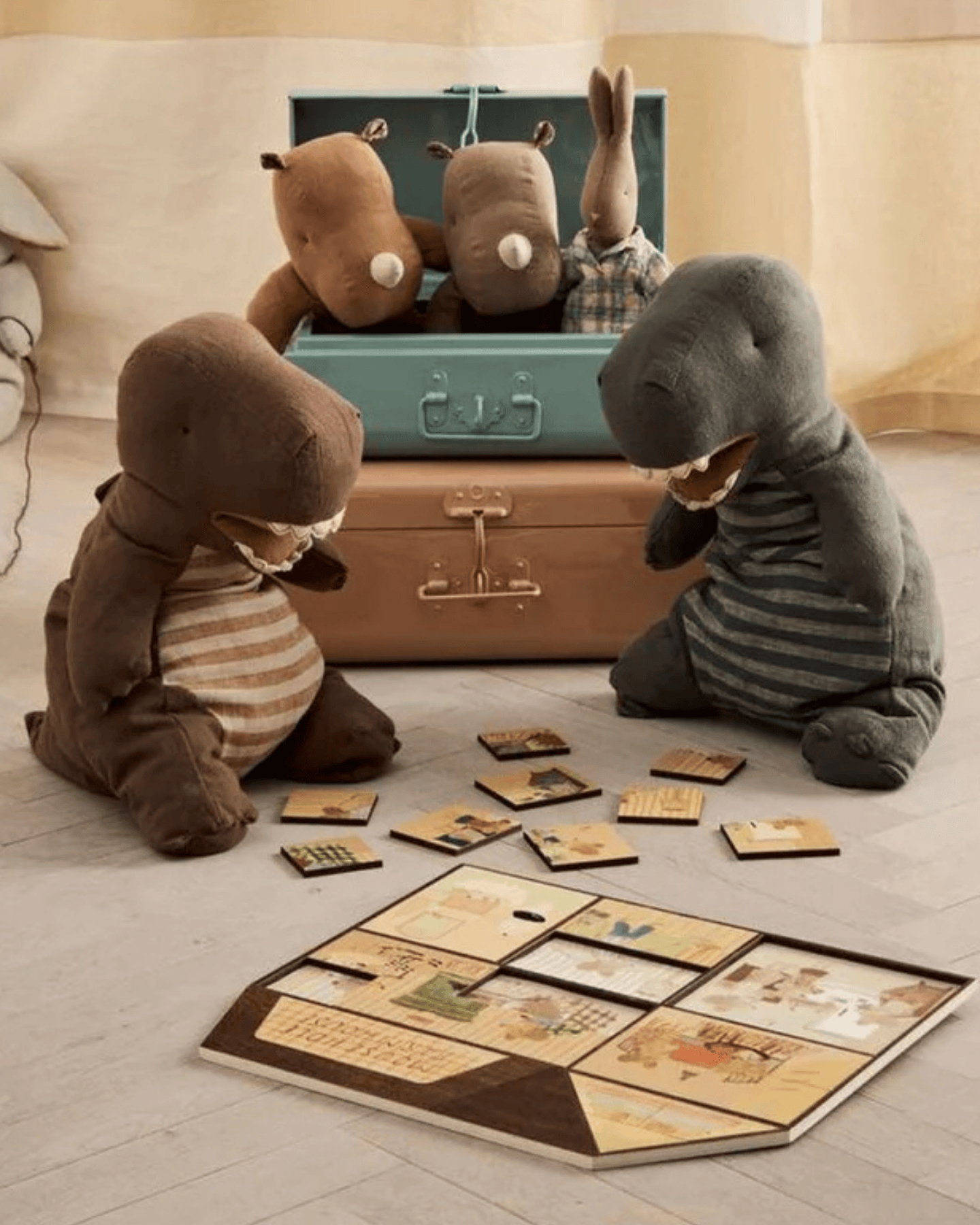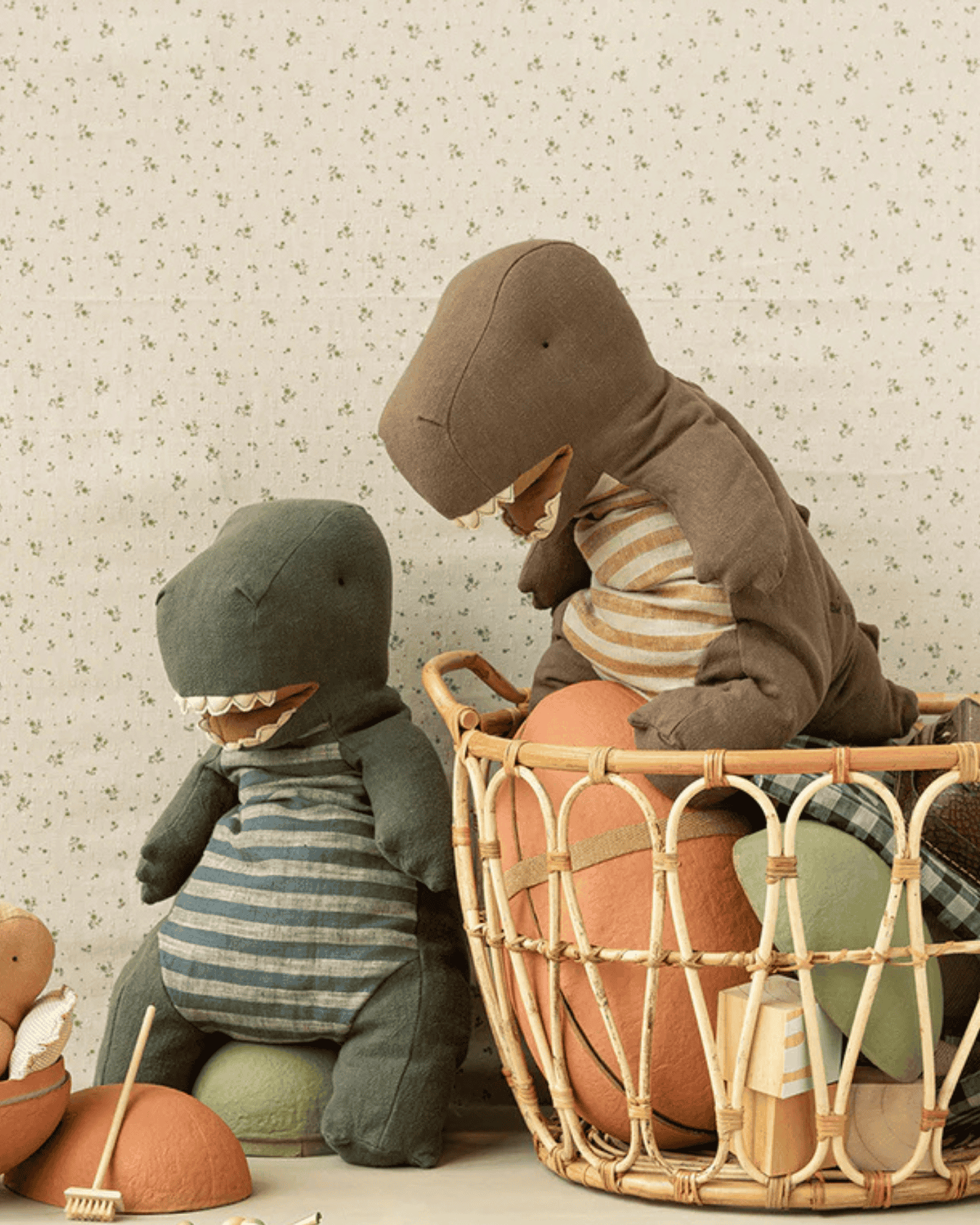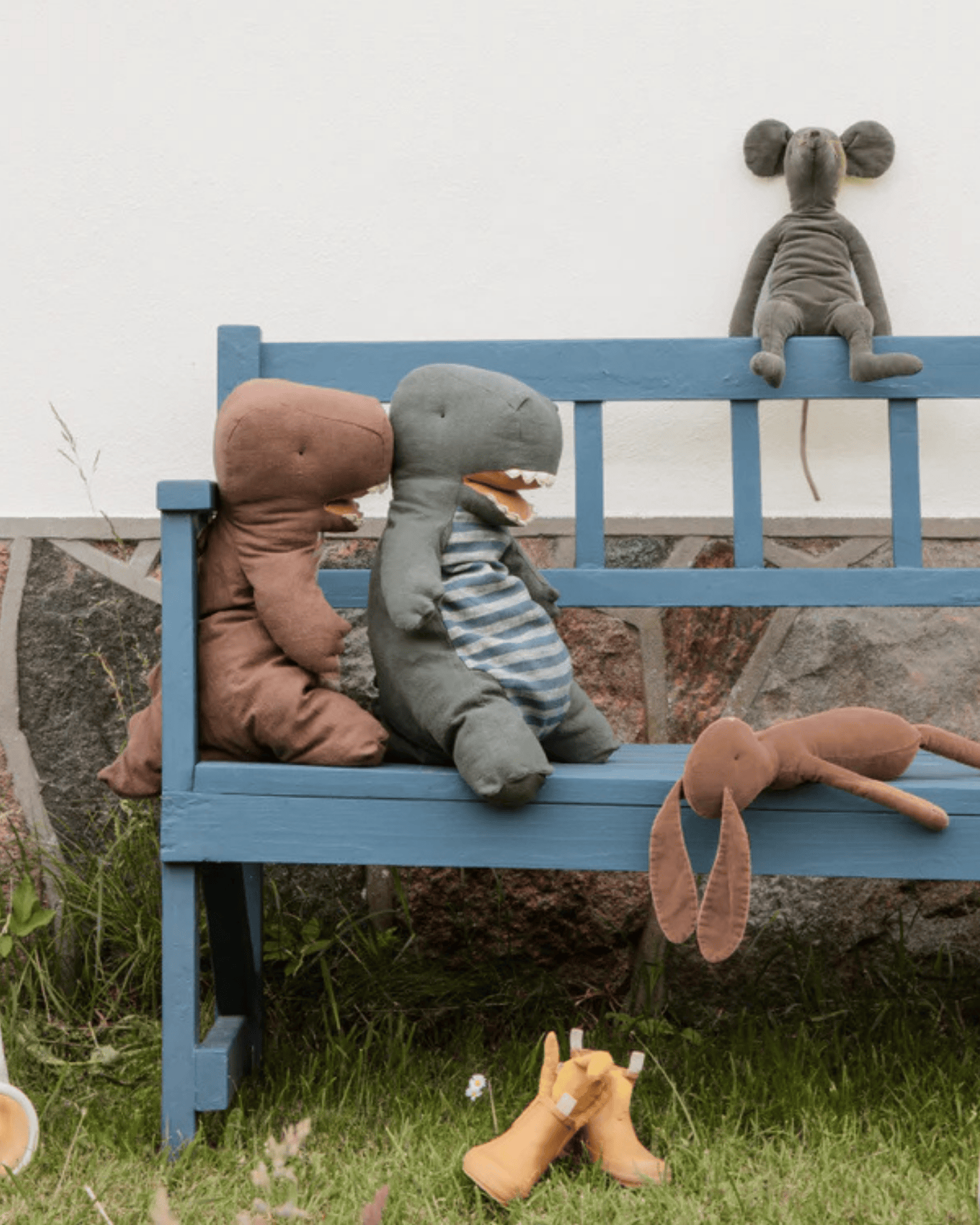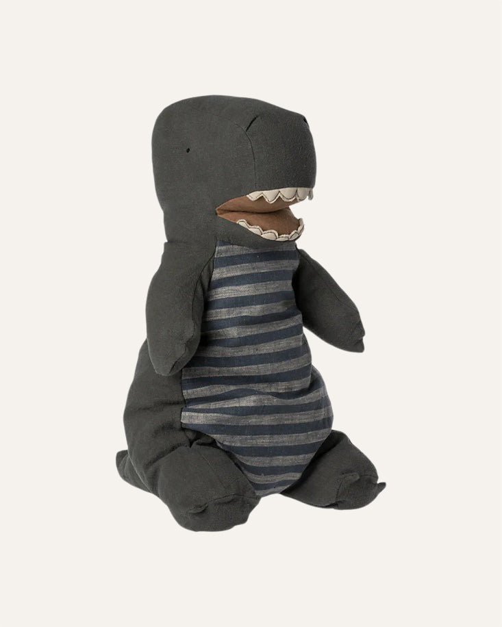 look at this funny friend! a large gantosaurus with big teeth is ready to play with all of us. it is made in a soft mix of ramie + cotton, the striped stomach is made in a very nice blend of linen + cotton.