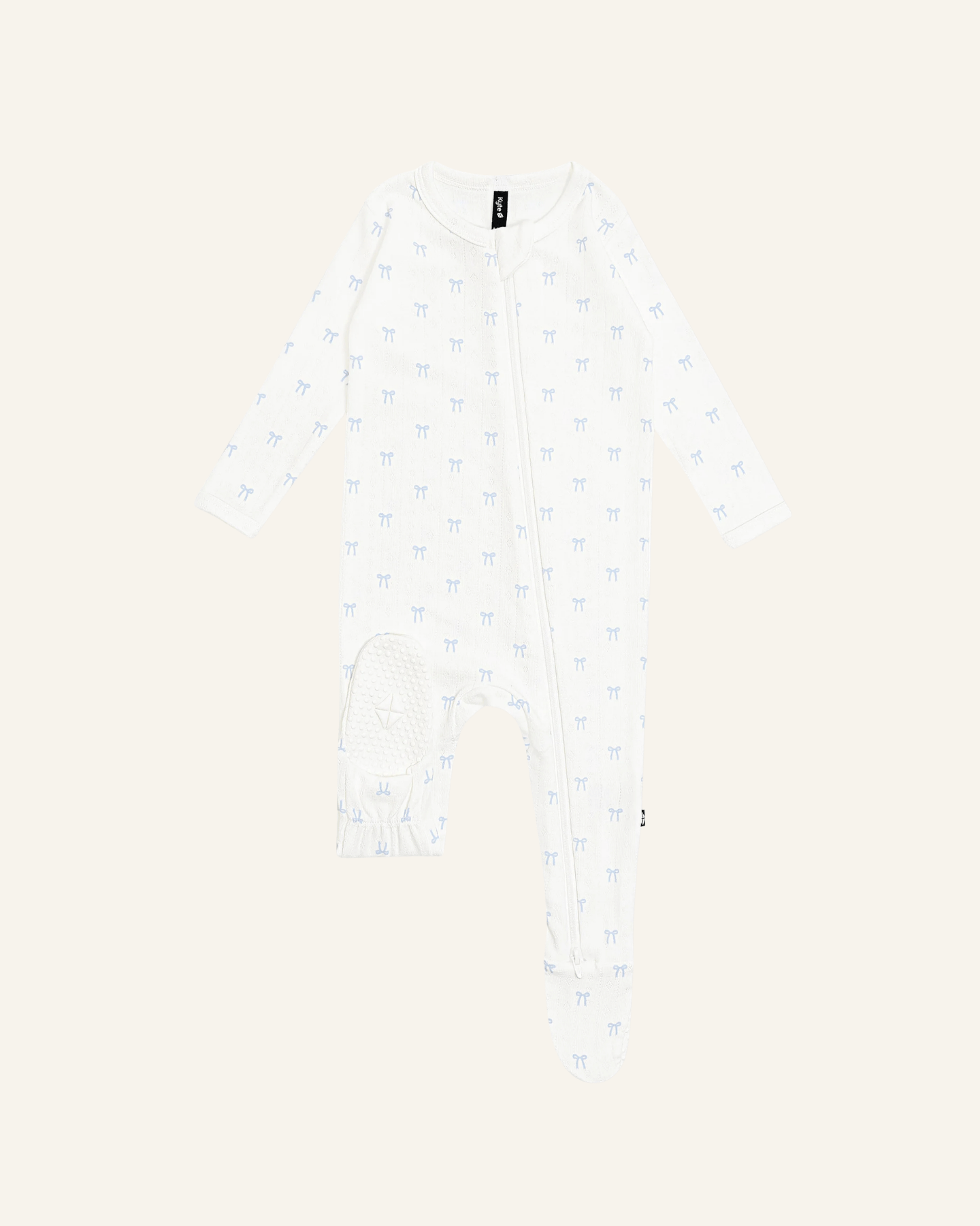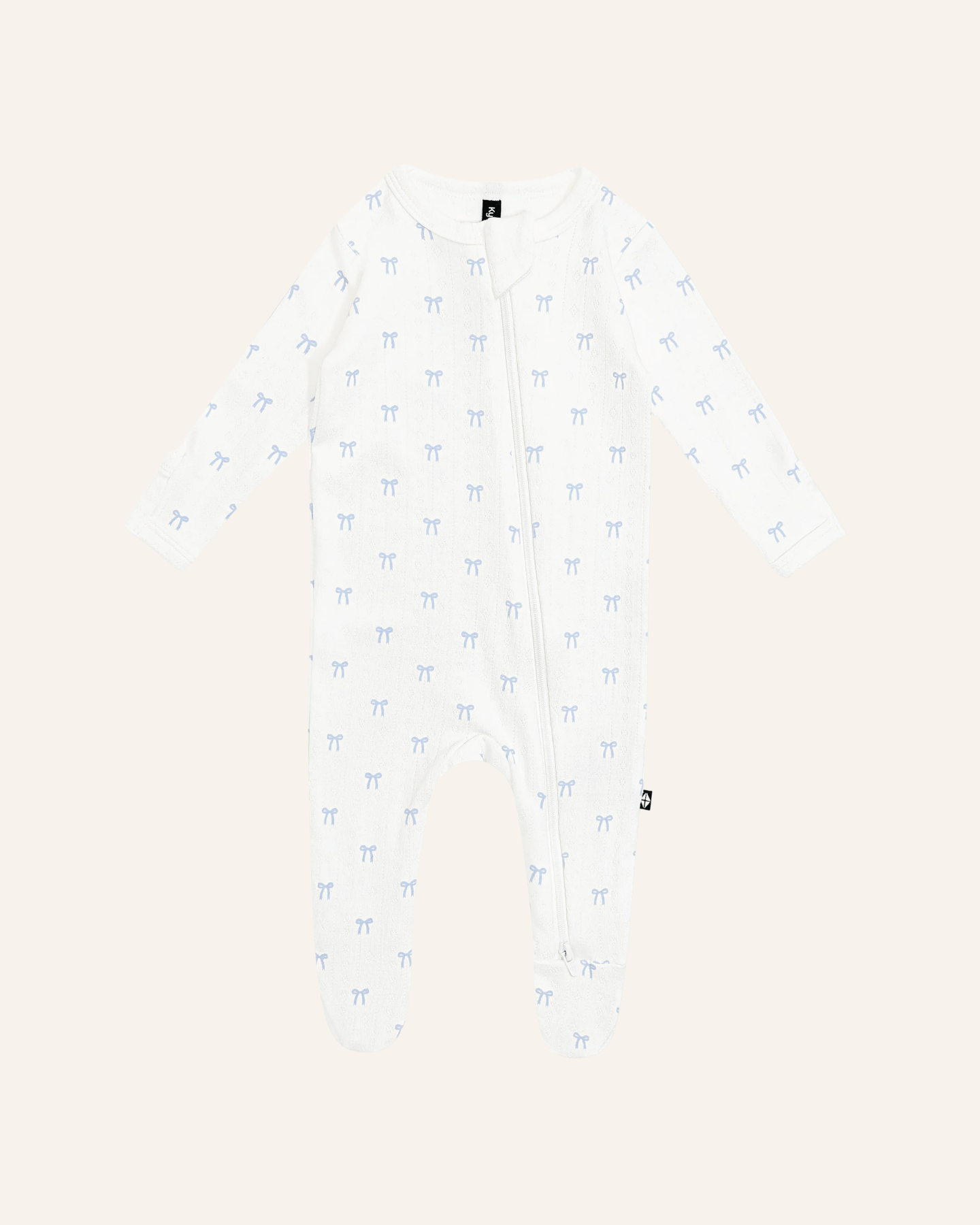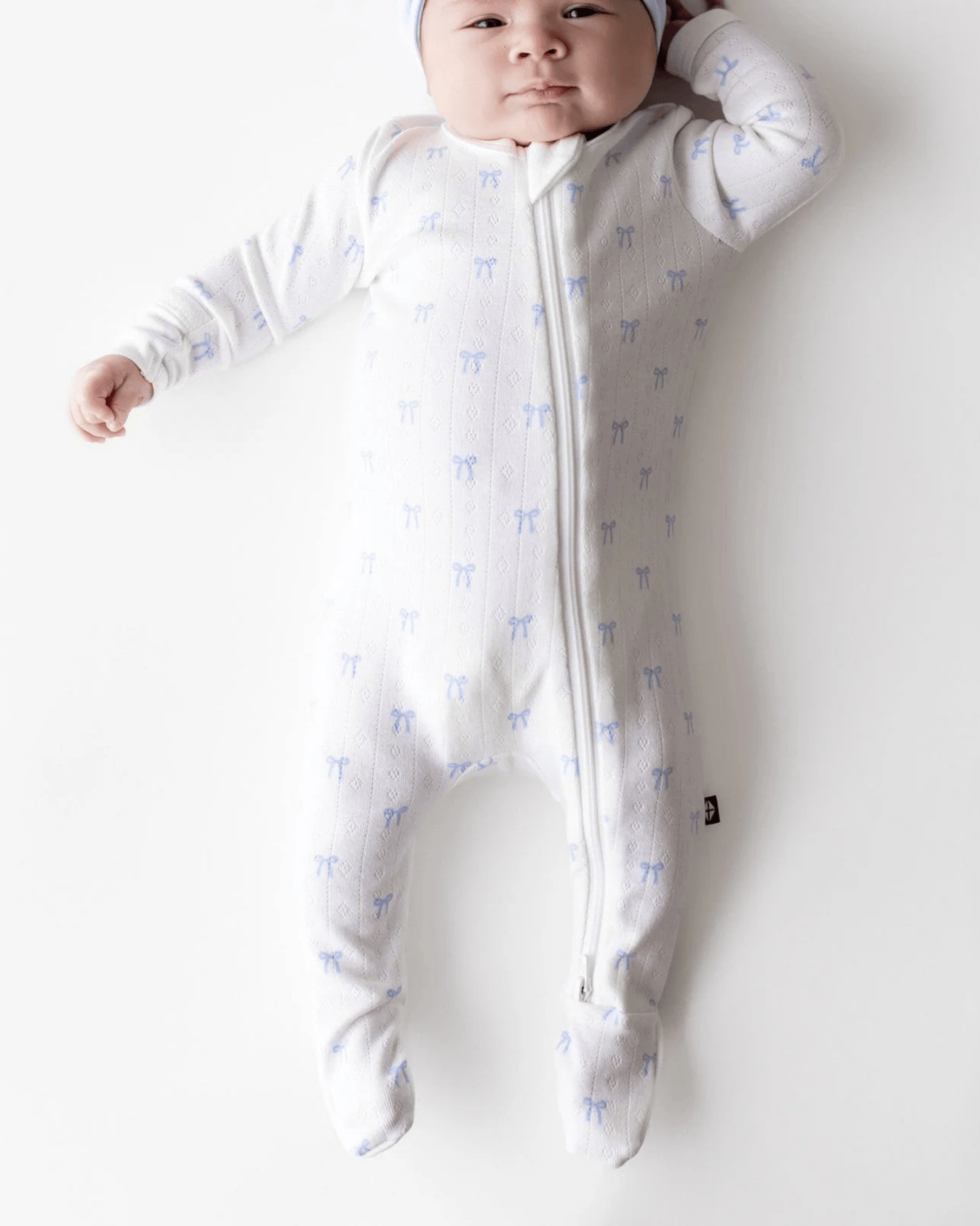 the pointelle zippered footie by kyte baby is perfectly cozy for those early days. this cloud-soft footie is gentle on newborn skin + supremely soft to the touch.features a dual zipper that makes middle-of-the-night diaper changes quick + easy. the stretchy fabric makes movement easy, while the breathable nature of bamboo keeps them comfortable for sleep + play.