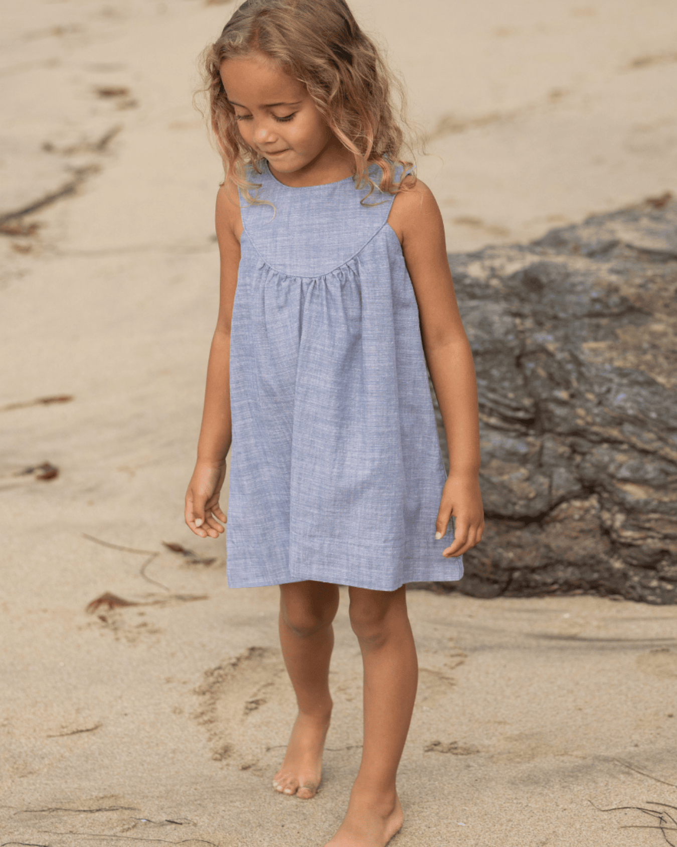 the poppy dress by go gently nation features a traditional little silhouette that is darling for your little girl. the front + back yoke with shirring + an a- line shape make this the perfect spring + summer dress. features a placket at shoulder + two wooden buttons.