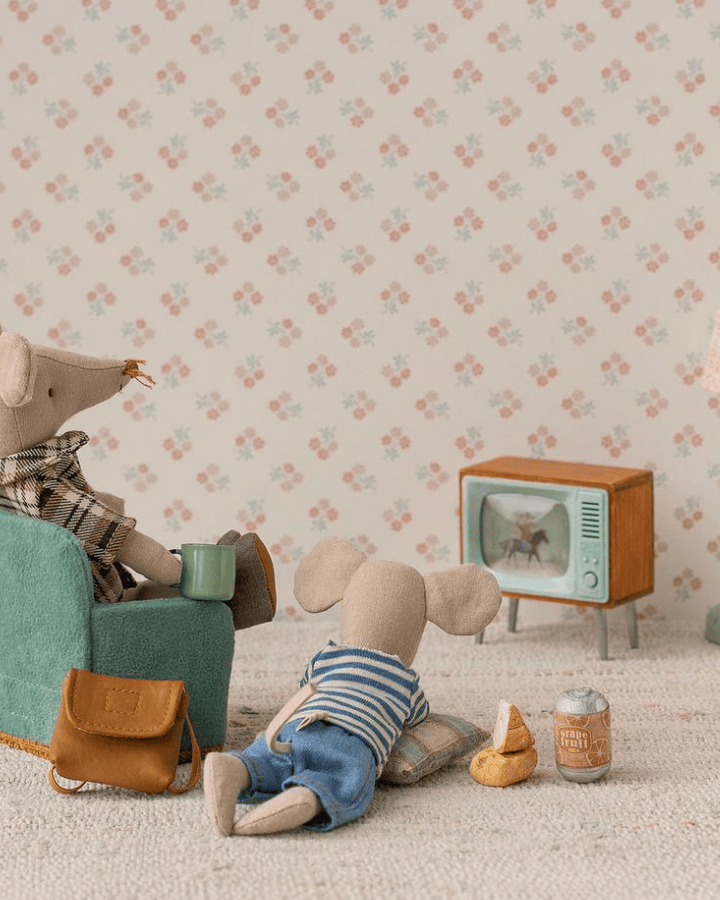 upgrade your mouse home with a maileg television that can gather the family for hours of fun. it brings a cozy touch to the home decor with the beautiful frame.